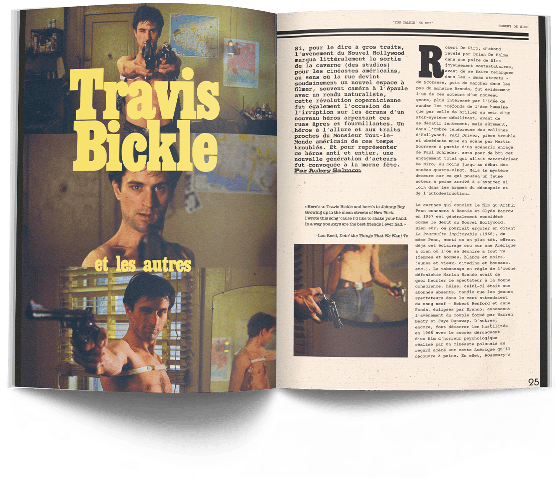 De sa relation fusionnelle avec Martin Scorsese à son explosion dans Taxi Driver, de son face-à-face gravé dans le marbre avec Al Pacino dans Heat à ses détours inattendus dans la comédie, prenant volontiers le contrepied de son image de dur à cuir, c’est toute une trajectoire de cinéma qui est célébrée ici. Acteur complexe, intense, tantôt rageur, tantôt taiseux, De Niro aura marqué au fer rouge plusieurs générations de spectateurs et restera toujours, dans l’imaginaire collectif, ce jeune chien fou errant dans les rues d’un New York interlope, incarnation du cinéma à l’état pur. Avec ce dernier numéro de l’année, Rockyrama lui rend un hommage qui n’a que trop tardé. Retour sur la carrière inégalée de Robert De Niro.